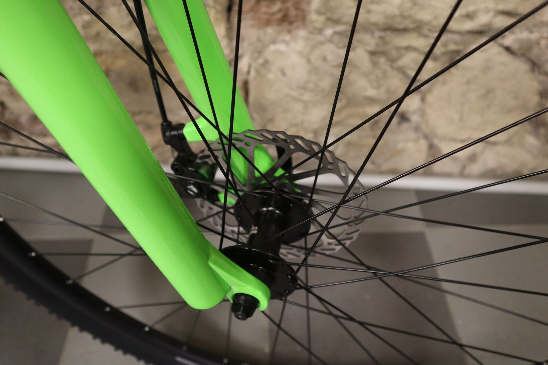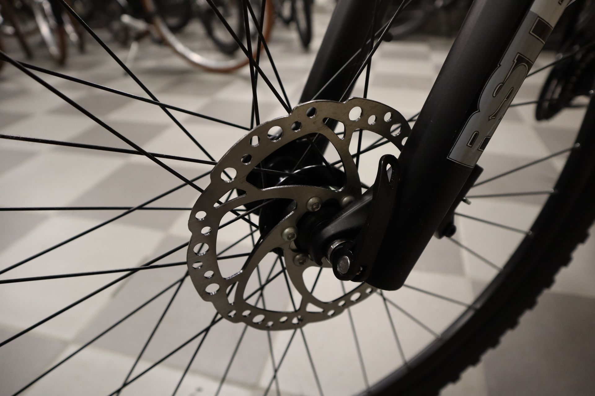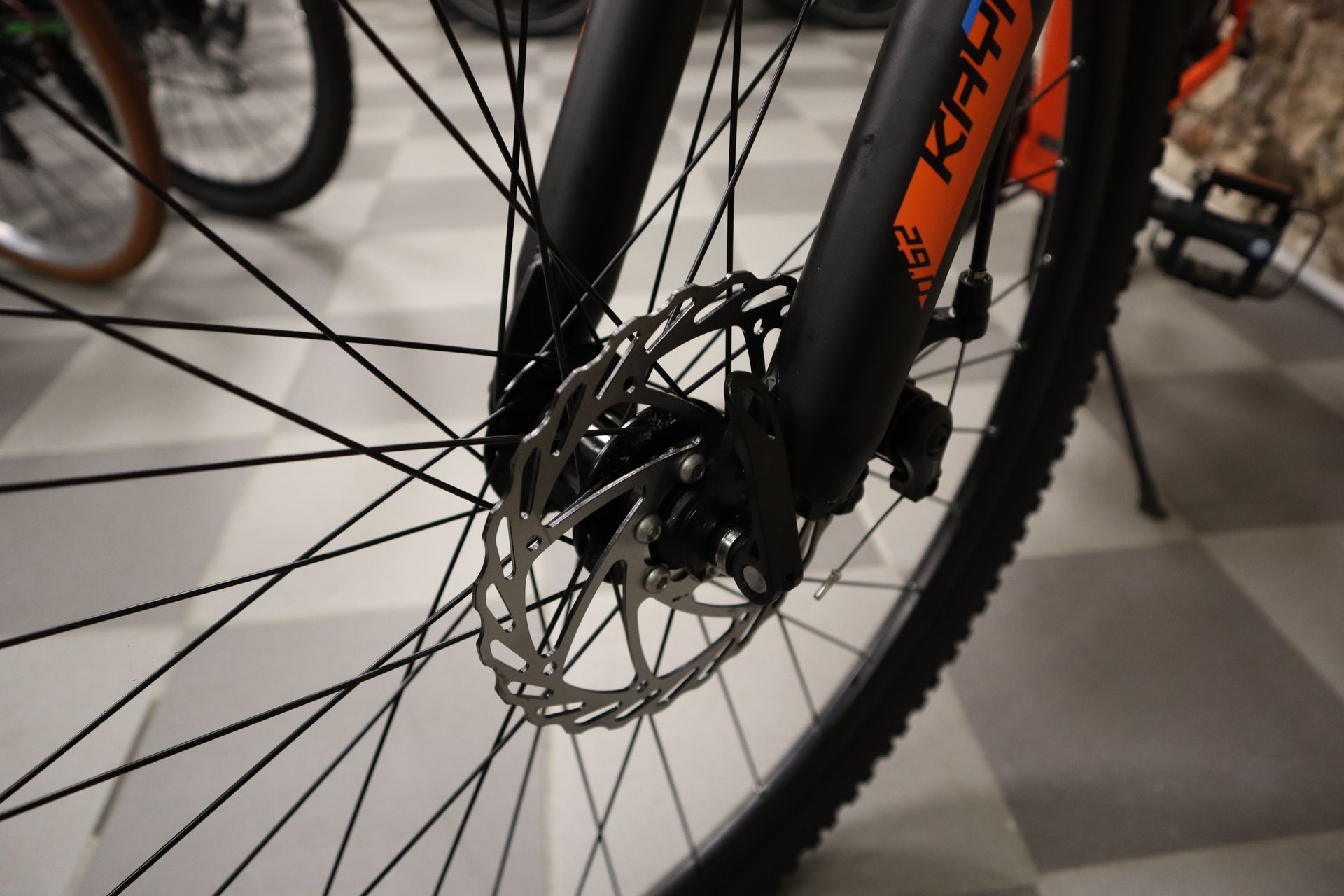 Telaio in alluminio, forcella ammortizzata regolabile bloccabile. Freni a disco meccanici, cambio Shimano Altus 24V. Cerchi a profilo alto e mozzi in alluminio.