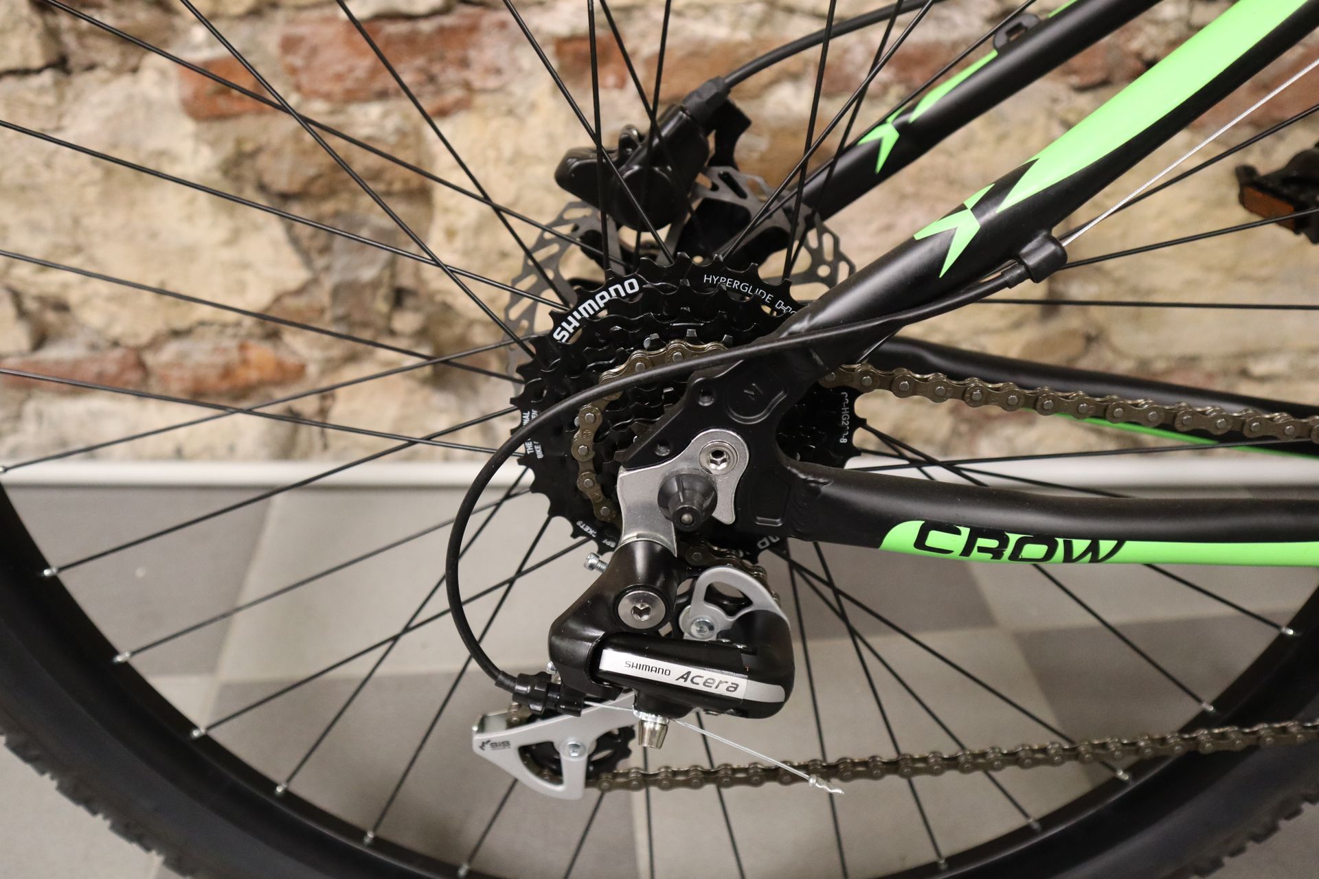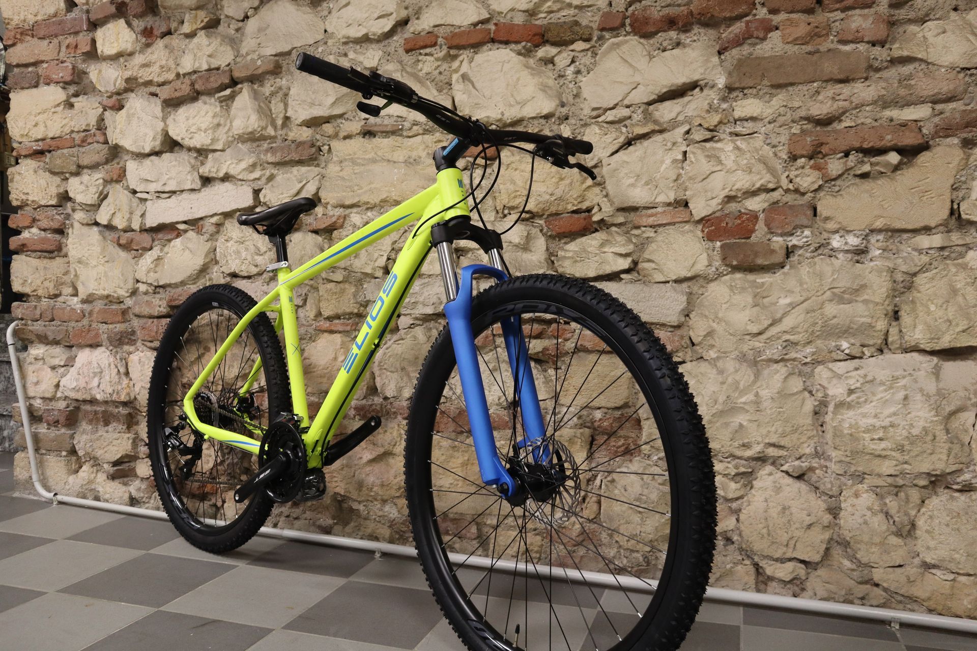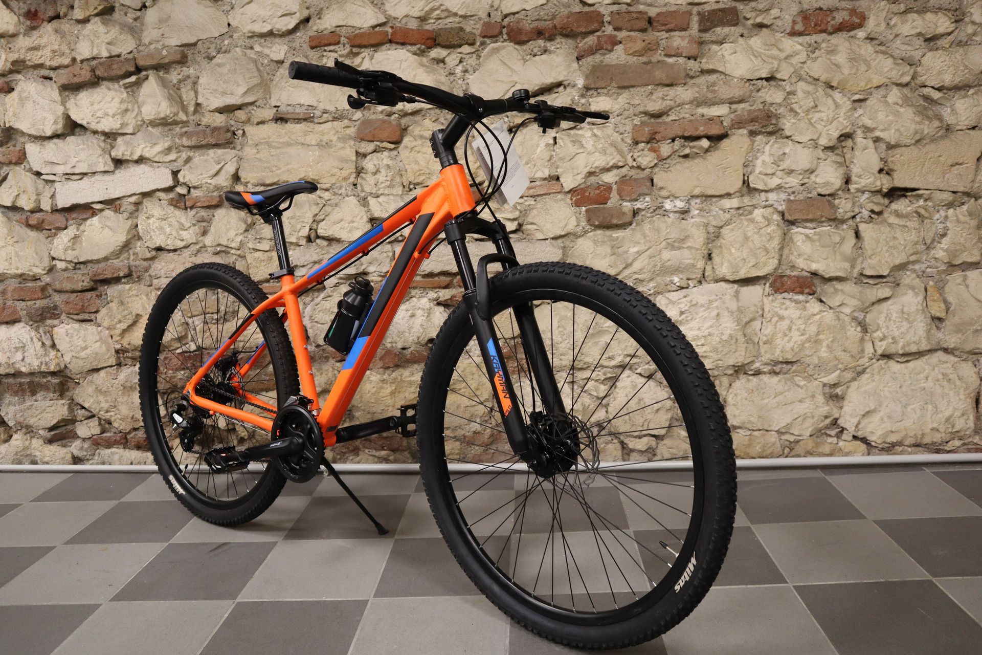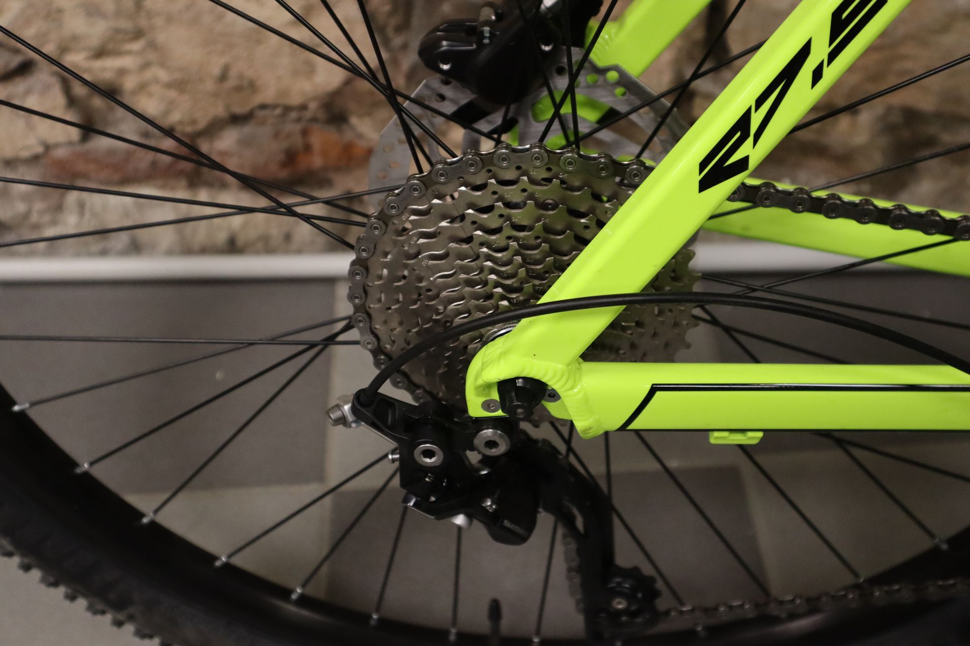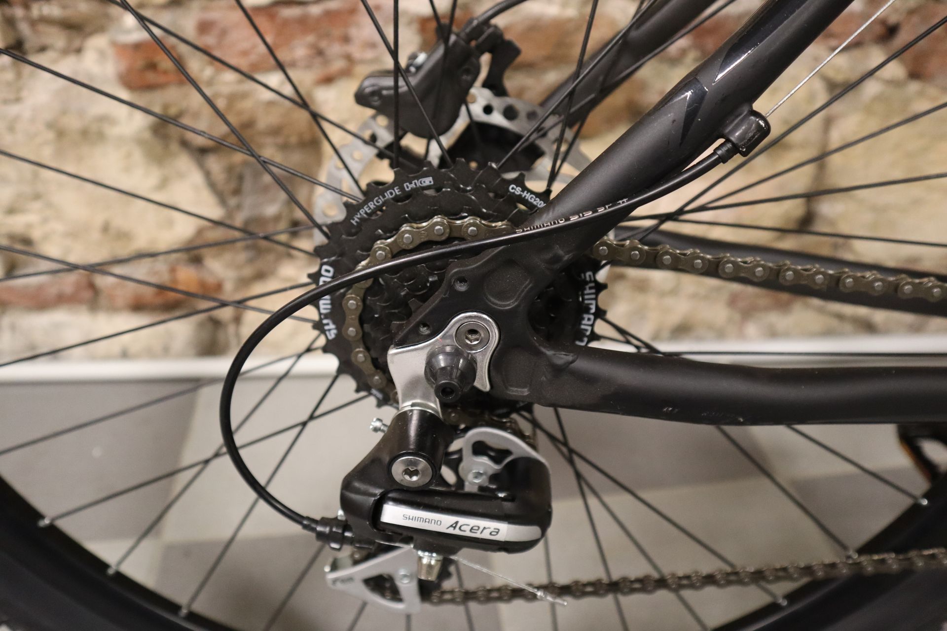 Telaio in alluminio, forcella ammortizzata regolabile bloccabile. Freni a disco idraulici, cambio Shimano Acera 24V. Cerchi a profilo alto e mozzi in alluminio.