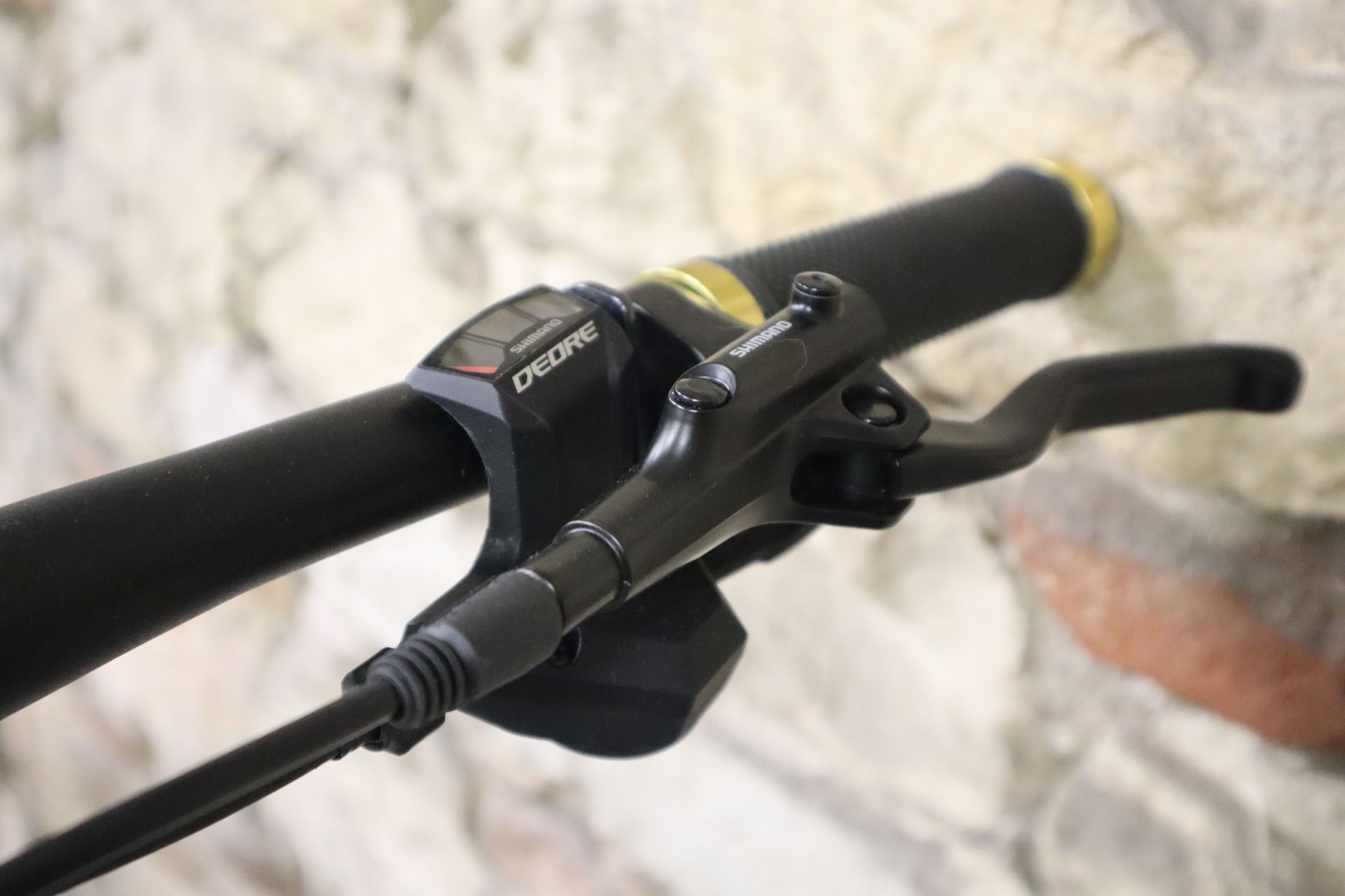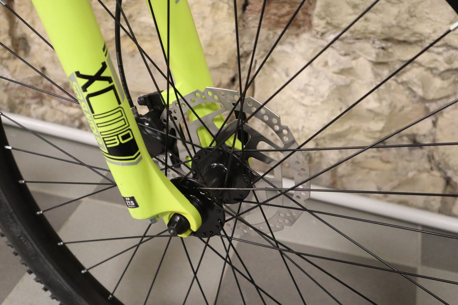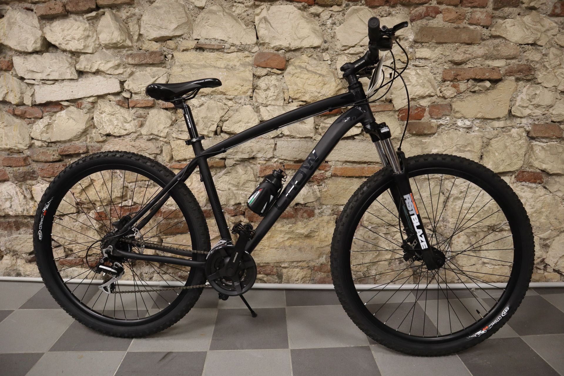 Telaio in alluminio, forcella ammortizzata regolabile bloccabile. Freni a disco idraulici, cambio Shimano XT 2x10V.